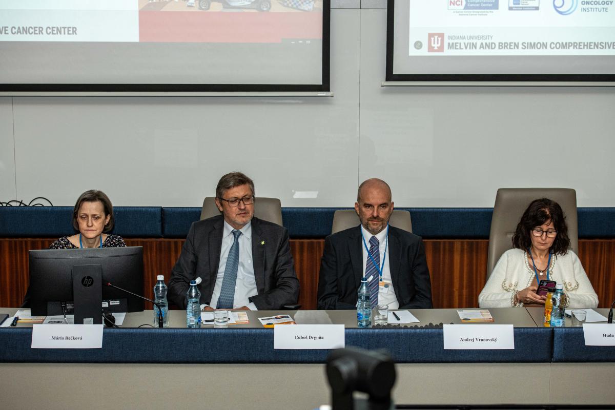 Predsedníctva sa ujali Dr. Mária Rečková, riaditeľka Národného onkologického inštitútu a prof. Michal Mego, prednosta II. Onkologickej kliniky LF UK A NOÚ. Odborné podujatie v anglickom jazyku sa konalo vďaka medzinárodnej spolupráci medzi Indiana University Simon Comprehensive Cancer Center (IU- SCCC) v Indianapolise a naším špecializovaným ústavom pod záštitou NOÚ/NOI, IU-SCCC.
