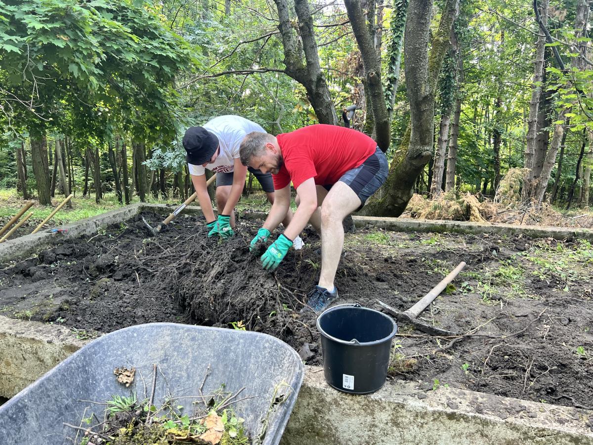 Naši dobrovoľníci dnes čistili, odhrabávali konáre a porasty, okopávali a vytvárali základy pre komunitnú záhradu. Pre onkologických pacientov je veľmi dôležité mať okolo seba príjemné a pokojné prostredie. Výskumy ukazujú, že pobyt v prírode a zeleň môžu znížiť stres, zlepšiť náladu a podporiť celkovú pohodu, čo môže pozitívne ovplyvniť proces liečby a zotavovania.