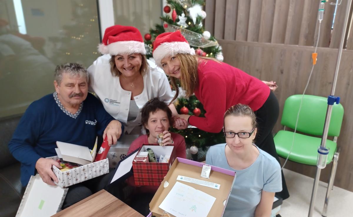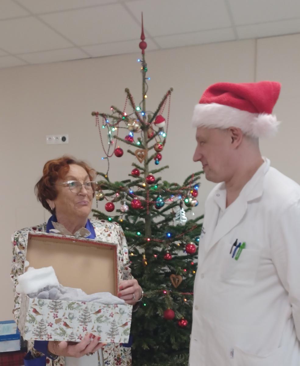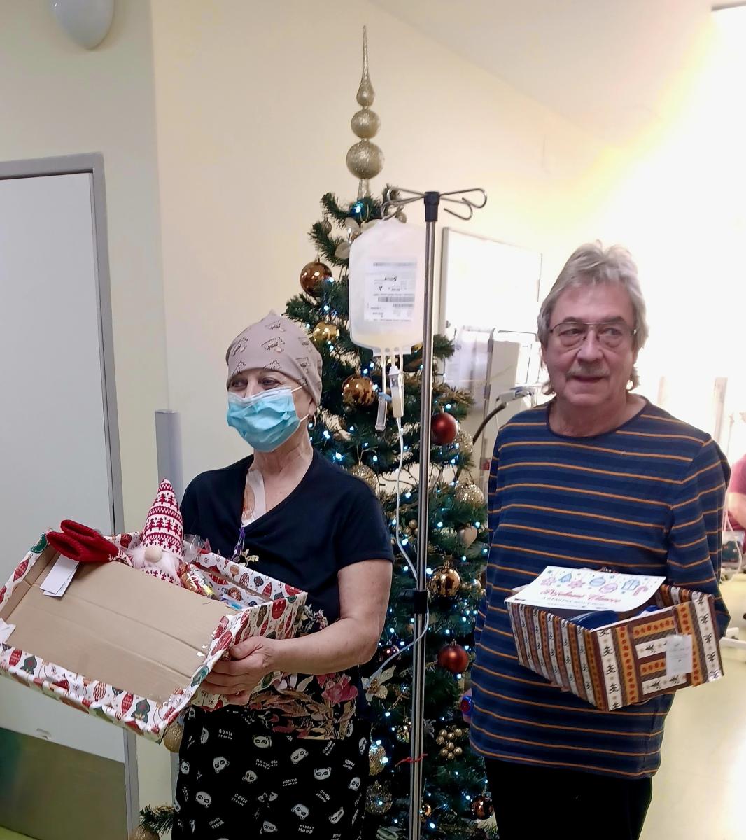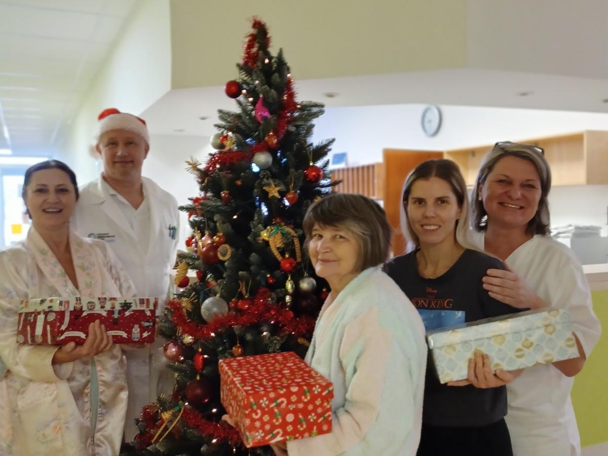 Nádherne zabalené darčeky odovzdal pacientkam a pacientom námestník pre zdravotnú starostlivosť Jozef Dolník s hovorkyňou ústavu Patríciou Kubicovou. Kolegovia z údržby sa vopred postarali o prepravu 363 darčekov na všetky lôžkové oddelenia a tiež do aplikárne na Oddelenie ambulantnej chemoterapie. Vďaka láskavej štedrosti, srdečných Vianočných odkazov s prianím skorého uzdravenia či úprimného povzbudenia od mnohých ľudí na celom Slovensku, pocítili naši pacienti Vianočné posolstvo vo svojej pravej podobe.