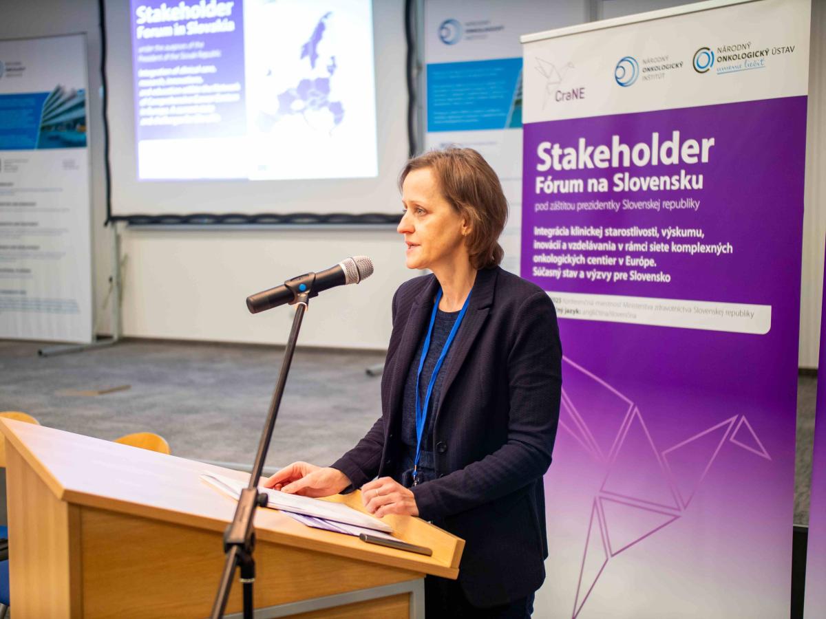 „Slovensko nemá v súčasnosti etablované národné komplexné onkologické centrum. Dnešné fórum preto spojilo všetky relevantné zainteresované strany v rámci spoločnej diskusie s následnou realizáciou krokov vedúcich k vytvoreniu onkologického centra, ktoré úspešne pomáhajú onkologickým pacientom a dokážu s vysokokvalitnou a dostupnou zdravotnou starostlivosťou naplno integrovať excelentný výskum, vývoj a vzdelávanie," zdôraznila Dr. Mária Rečková, riaditeľka Národného onkologického inštitútu, ktorý aktívne participuje na celoeurópskom projekte CraNE-JA. Ten zastrešuje sieť už existujúcich komplexných onkologických centier, prípravné aktivity pre tvorbu Národných komplexných onkologických centier a ich vzájomné prepojenie v rámci EÚ. CraNE-JA tak dokáže oveľa väčšou silou podporiť implementáciu skorého zachytávania ochorení, skríningu, diagnostiky, liečby, podpory preživších onkologických pacientov, výskumu a vzdelávania pre zamestnancov v onkológii so zabezpečením potrebnej kvality a jej kontrolou.