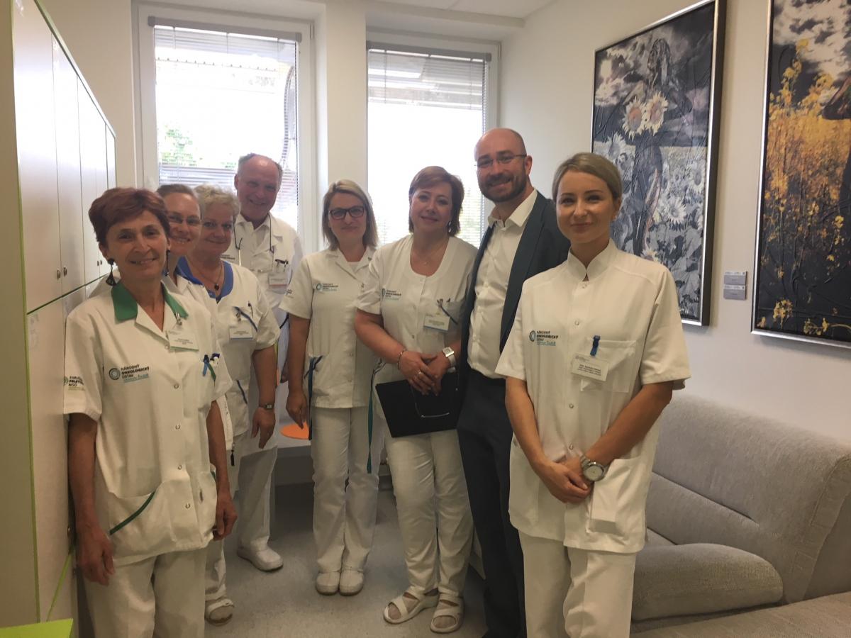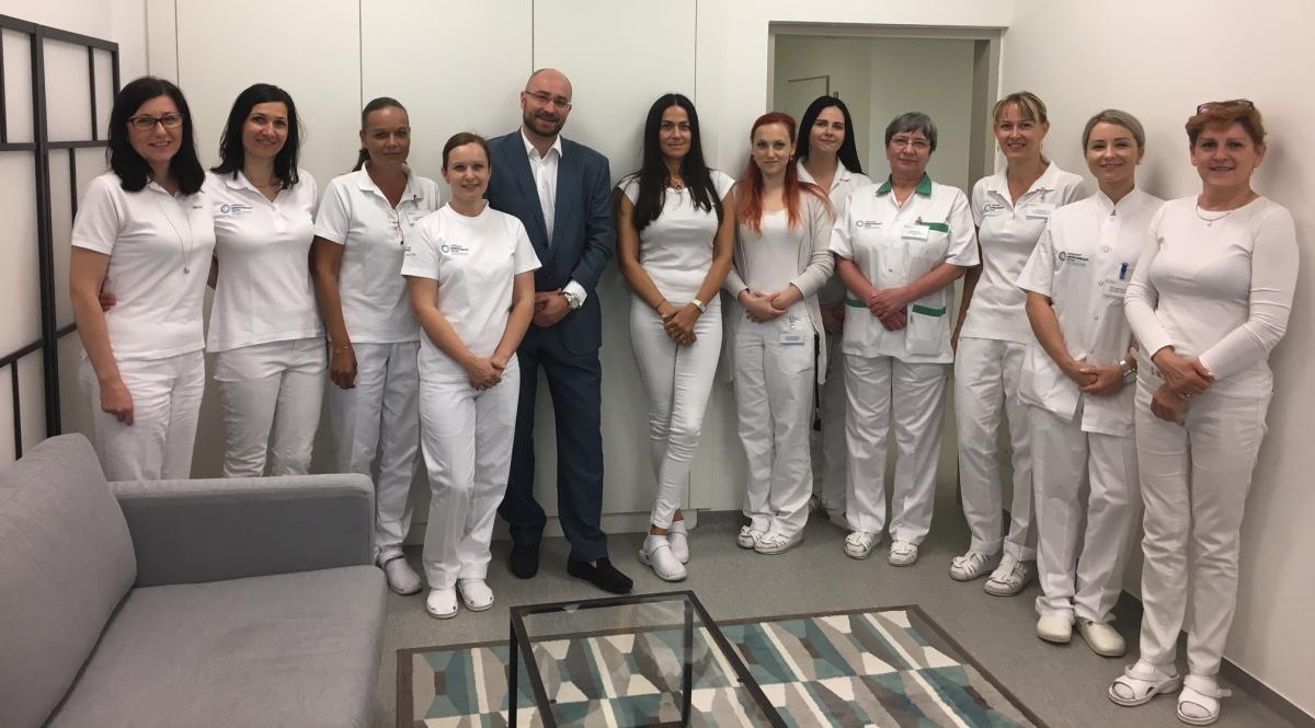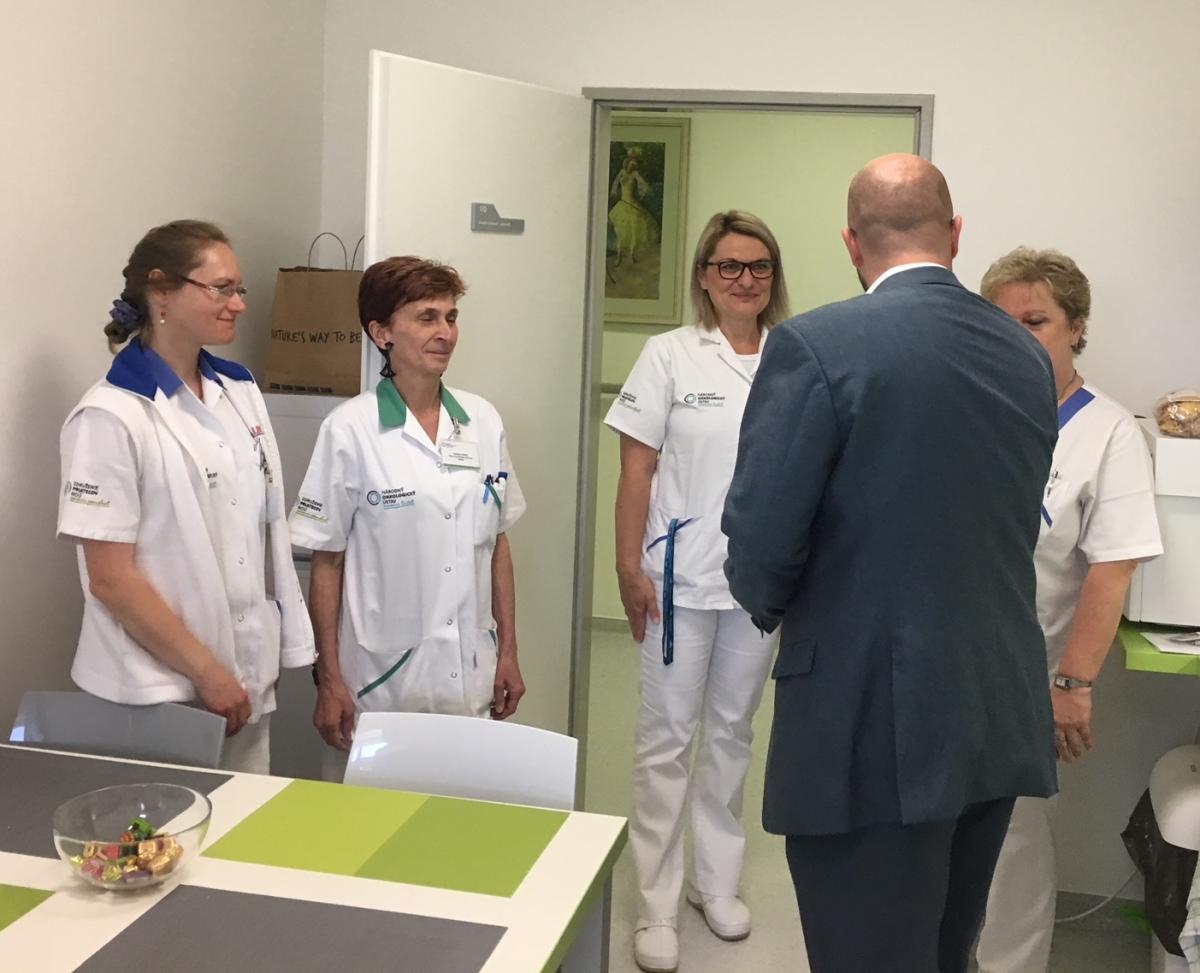 Svojím kolegom v mene vedenia osobne zagratuloval ekonomický riaditeľ Tomáš Alscher a Katarína Zanchetta, vedúca odboru ošetrovateľstva. Oslávenkyne a oslávenci dostali sladkú odmenu v podobe zákusku.