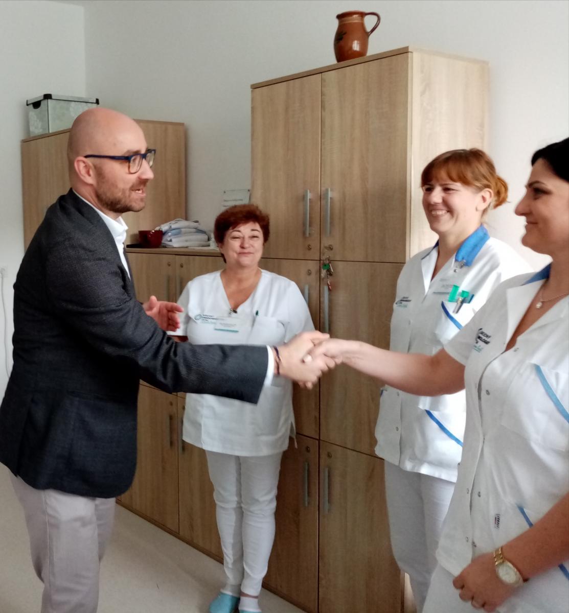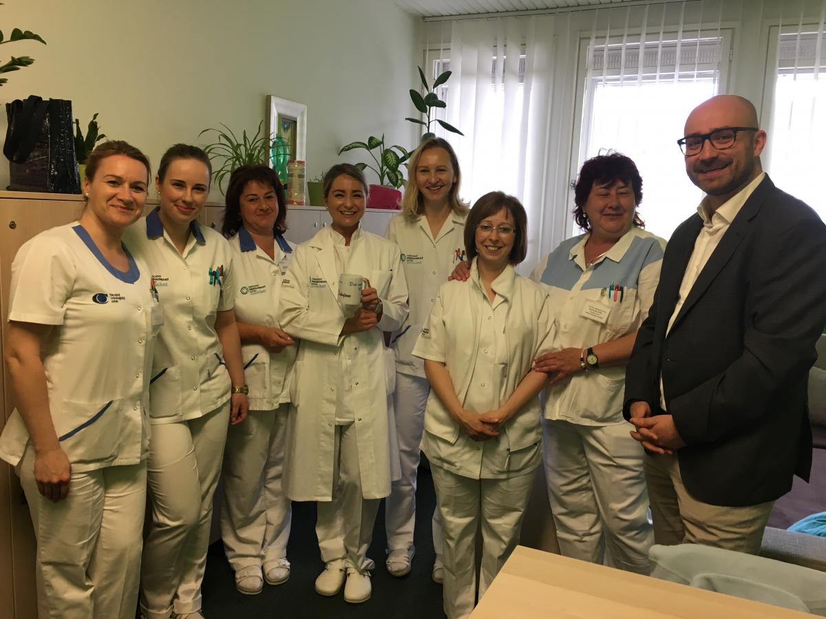 Milé sestry, laborantky, laboranti, techničky, technici, fyzioterapeutky, fyzioterapeuti, zdravotnícke asistentky, zdravotnícki asistenti, sanitárky a sanitári prajeme vám všetko najlepšie. Pracujete vo veľmi náročnej oblasti, práca v zdravotníctve, v medicíne, práca s pacientmi je poslaním. Viem, že ku každodenným povinnostiam pridávate úsmev, povzbudenie, a trpezlivosť, ktorú naši pacienti tak veľmi potrebujú“, týmito slovami ocenil obetavú prácu náš generálny riaditeľ Tomáš Alscher. K osobnej gratulácii na 34 pracoviskách NOÚ sa pridala aj Katarína Zanchetta, vedúca odboru ošetrovateľstva. Oslávenkyne a oslávenci dostali hrnček s poďakovaním a sladkú tortovú odmenu.