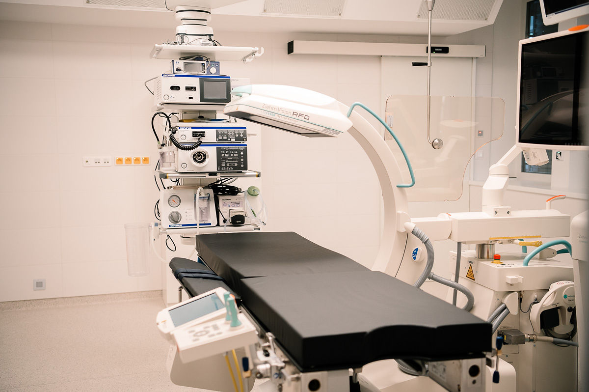 Nová zákrokovňa disponuje mobilným RTG prístrojom s C ramenom pre špeciálne endoskopické vyšetrenia, mobilným operačným stolom s karbónovou doskou pre intraoperatívnu diagnostiku a snímkovanie, terapeutickou endoskopickou zostavou a zariadeniami na dezinfekciu a sterilizáciu endoskopov. Súčasťou rozsiahleho projektu je aj nová sledovacia tzv. prebúdzacia miestnosť pre pacientov po náročných zákrokoch, kde pomocou nového monitorovacieho systému budú sledované ich základné životné funkcie.