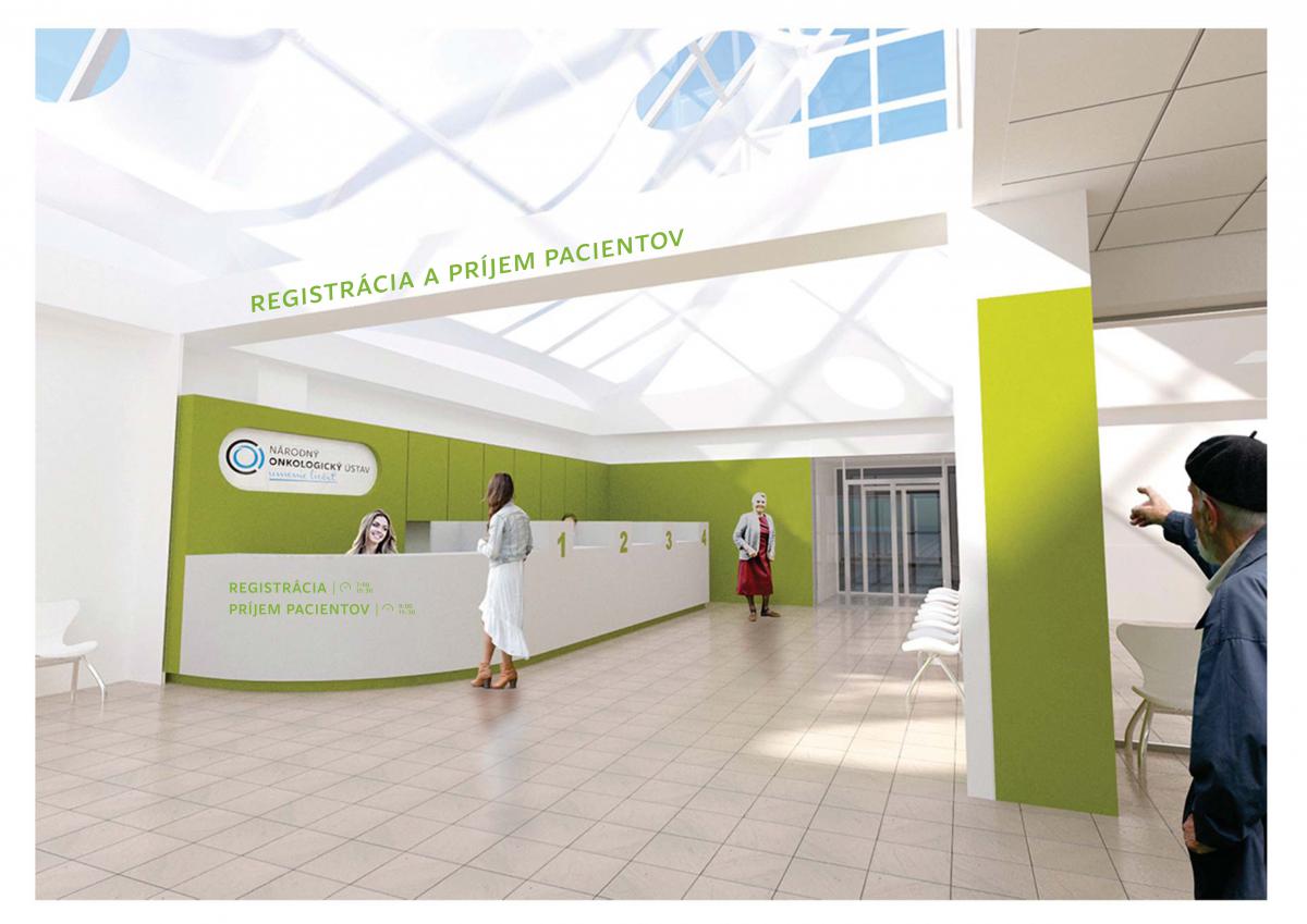 Plánujeme obnoviť aj centrálny príjem a evidenciu chorobopisov v Pavilóne radiačnej onkológie. Rekonštrukcia poskytne väčší priestor a rozšírenie príjmových pultov, čím pacienti získajú viac súkromia pri registrácii osobných údajov.