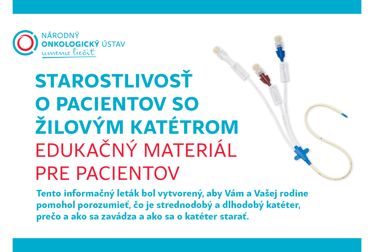 Pripravili sme pre vás nový informačný leták, aby sme vám a vašim príbuzným pomohli pochopiť, čo je strednodobý a dlhodobý žilový katéter, prečo a ako sa zavádza a ako sa o katéter starať. Čoskoro bude edukačný materiál k dispozícii pre našich pacientov, ktorý potrebujú žilový katéter počas svojej liečby, aj v tlačenej podobe.