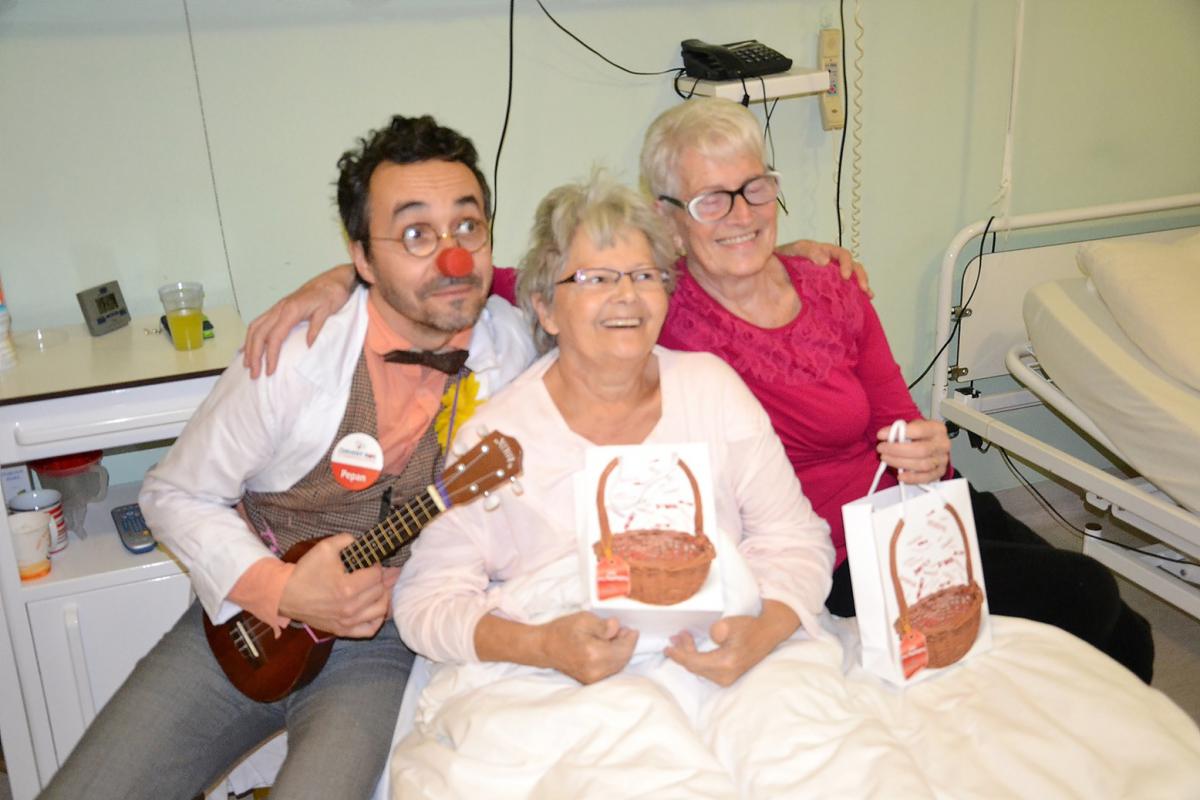 Rozdávali nielen radosť, smiech a veselé pesničky ale aj špeciálne „koše plné humoru". Boli v nich - knihy, krížovky, hlavolamy a masážne loptičky, ktoré našich pacientov pobavia a spestria im pobyt v nemocnici.